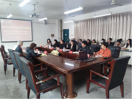 在項目評估座談會上,湯春來對遠道而來的專家組表示熱烈歡迎,同時期待雙方在未來建立更緊密、更深入的合作關系。專家組就本次評估反饋了意見,對中加班教學情況給予了充分肯定和高度贊許,高度評價了我校在合作辦學過程中對教學質量的高度重視、對教學環境建設的積極投入,以及在課程建設、學生培養上所付出的辛勤努力。外事處、職院教務處、電信工程學院、工商管理學院相關負責人與專家組圍繞外教來華教學、教師培訓及學生雙向游學等事宜展開交流討論,重點就拓展第二個中外合作辦學項目進行了深入探討,并在多個方面達成了共識。