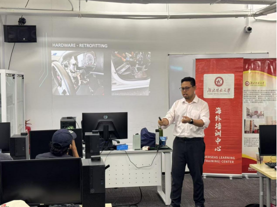 本次培訓,馬來西亞計算機科學與工程大學Syahril Anuar Bin Idris博士圍繞汽車智能駕駛和自動駕駛,為在場學者講授了汽車自動駕駛和智駕系統的發展與應用。他從汽車智能駕駛技術的發展趨勢及前景、機械設計與原理、電控系統和汽車智駕系統等方面與在場學員進行分享,通過講授,現場學員對智能駕駛技術的應用與發展有了全面、深入的了解,對我校海外學習(培訓)中心舉辦的系列培訓活動表示感謝。