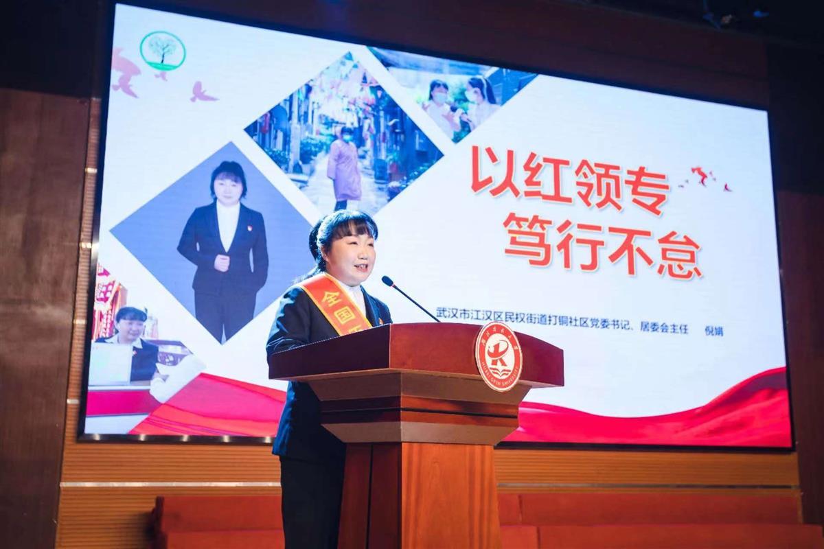活動邀請黨的二十大代表、全國勞動模范、武漢地鐵運營有限公司漢口火車站中心站長姚婕,黨的二十大代表、全國勞動模范、湖北省新華書店(集團)有限公司武漢市分公司經理周怡,全國五一勞動獎章獲得者、中鐵武漢電氣化局信號女子突擊隊隊長王艷鴿,全國五一巾幗標兵、全國婦聯“城鄉社區抗疫巾幗先鋒”、武漢市江漢區民權街道打銅社區書記倪娟等4位巾幗勞模代表一一登臺,結合自身成長經歷,動情講述了她們用實際行動詮釋勞模精神、勞動精神、工匠精神的奮斗故事,贏得現場熱烈掌聲。校黨委常委、工會主席張化斌為勞模們頒發了“工匠精神”實踐導師聘書。