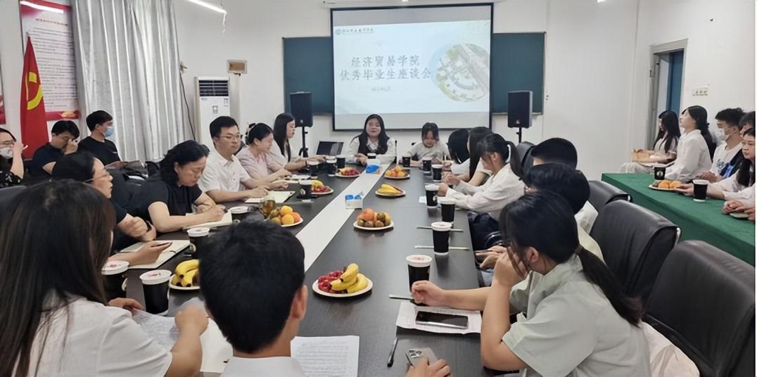 6月14日中午,湖北科技職業學院經濟貿易學院開展畢業季系列活動之優秀畢業生座談會。學院領導、教師代表以及全體輔導員參加會議,優秀畢業生代表和在校生代表在會場同憶往昔,共話未來。