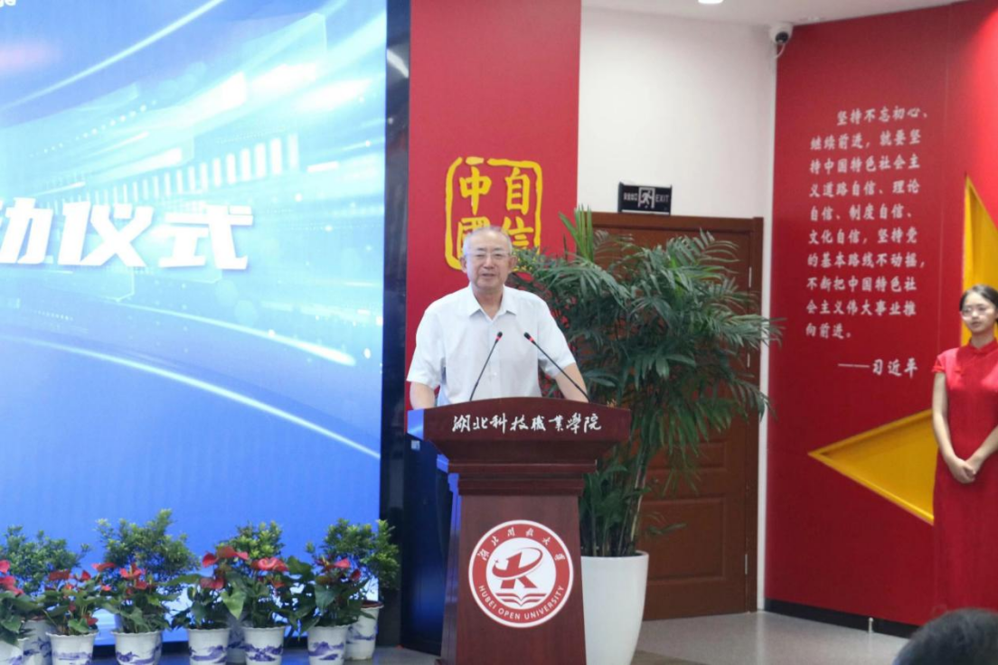 啟動儀式現場,劉義代表學校致歡迎詞,他介紹了近年來湖北科技職業學院的發展歷程和建設方面取得的豐碩成果,并對產業學院的發展提出了進一步的希望和要求。
