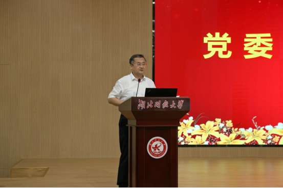 就如何進一步深入學習黨的二十屆三中全會精神,鐘毓寧提出三點要求。一是提高政治站位,充分認識全會的重大意義。全校干部師生要深刻領會全會的精神實質和核心要義,深刻領會和把握進一步全面深化改革的主題、重大原則、重大舉措、根本保證,切實把思想和行動統一到黨中央決策部署上來,激發全體師生的使命感、責任感,凝心聚力、奮發進取,在新征程上繼續把改革推向前進。二是強化組織領導,迅速掀起學習宣傳貫徹熱潮。全校各級黨組織要把學習宣傳貫徹全會精神作為當前和今后一個時期的一項重大政治任務,擺上重要議事日程,納入各級各類中心組和師生理論學習,用全會精神武裝全體黨員干部和師生員工頭腦。通過領導干部講授黨課思政課、師生宣講團宣講、黨員干部師生學習培訓、融入思政課等方式,營造學習宣傳貫徹的濃厚氛圍,努力用全會精神指導學校發展實踐。三是聚焦中心工作,推進實現學校高質量發展。把學習宣傳貫徹全會精神與學習貫徹黨的二十大精神結合起來,與習近平總書記關于湖北工作的重要講話和指示批示精神結合起來,與習近平總書記在中央民族工作會議上重要講話結合起來,與黨紀學習教育結合起來,與落實立德樹人根本任務結合起來,把黨的領導貫穿各項工作全過程,深刻把握教育、科技、人才在中國式現代化中的基礎性、戰略性支撐作用,聚焦高質量發展首要任務,以新發展理念引領學校綜合改革,把握開放教育和職業教育的規律,辦好一流開放教育、創建職業教育國家級高水平專業群,開創學校高質量發展新局面,在奮力推進中國式現代化建設湖北實踐中挺膺擔當。