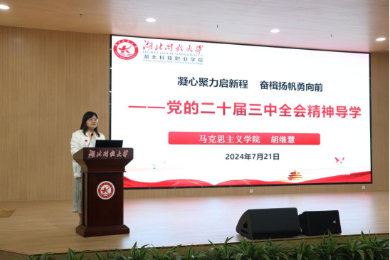 馬克思主義學院負責人胡繼慧以“凝心聚力啟新程 奮楫揚帆勇向前”為題對黨的二十屆三中全會精神作專題導學。她介紹了會議概況、會議主要精神以及如何貫徹落實,為我們深刻領會、準確把握、全面落實黨的二十屆三中全會精神開了個好頭。