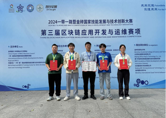 10月12日至14日,2024一帶一路暨金磚國家技能發展與技術創新大賽第三屆區塊鏈應用開發與運維賽項在浙江溫州舉辦。來自全國的179支高職院校隊伍和9支本科隊伍參加角逐,湖北科技職業學院軟件工程學院師生在比賽中展現出高超的技術技能水平和優良的精神風貌,憑借扎實的專業知識和精湛的實踐操作能力,在眾多參賽隊伍中脫穎而出。教師董燕燕、張根指導的劉澤文、羅朝旭與楊代鵬、秦鈺嫣兩支參賽隊均獲二等獎,學校榮獲優秀組織獎。