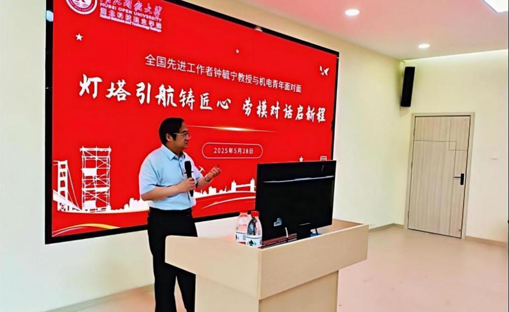 5月28日上午,湖北科技職業學院機電工程學院教工第一黨支部舉辦“燈塔引航鑄匠心,勞模對話啟新程”主題座談會。全國先進工作者、校黨委書記鐘毓寧教授與青年學子面對面交流。學院領導班子成員、全體輔導員及師生代表參會,座談由教工第一黨支部書記主持。活動以黨建為引領,深入貫徹勞模精神、勞動精神、工匠精神育人理念,通過分享經驗,引導青年學子堅定理想信念,錘煉專業本領,勇擔時代使命,為培育新時代高素質工匠人才凝聚精神力量。