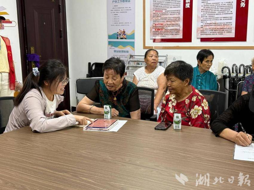 湖北日報客戶端訊(通訊員金壘、梅良玉)“奶奶,您最近身體怎么樣?最近氣溫炎熱,您一定要多注意身體?!睘樯钊肓私庵腔垧B(yǎng)老在基層社區(qū)的實踐狀況與現(xiàn)實需求,推動科技力量與為老服務深度融合,7月24日上午,湖北科技職業(yè)學院克勤志愿服務隊暑期社會實踐團隊走進東湖磨山社區(qū)磨山小區(qū),開展智慧養(yǎng)老服務專題調(diào)研活動。此次活動以“關愛老年人、服務暖人心、科技助養(yǎng)老”為主題,通過實地走訪、互動交流、系統(tǒng)調(diào)研等形式,深入了解老年人實際需求,探索智慧養(yǎng)老服務優(yōu)化路徑,為社區(qū)養(yǎng)老事業(yè)注入青春力量。
