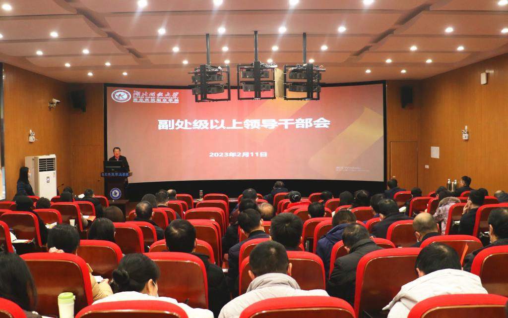 本網訊(通訊員 李玲芳/文 李賀剛/圖)2月11日上午,學校召開副處級以上領導干部會,會議由校黨委書記劉義主持,校長鐘毓寧,紀委書記張文凱,副校長宋移安、湯春來,黨委常委張化斌、李宜兵出席,副處級以上領導干部參加。
