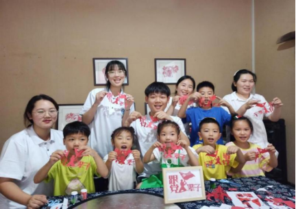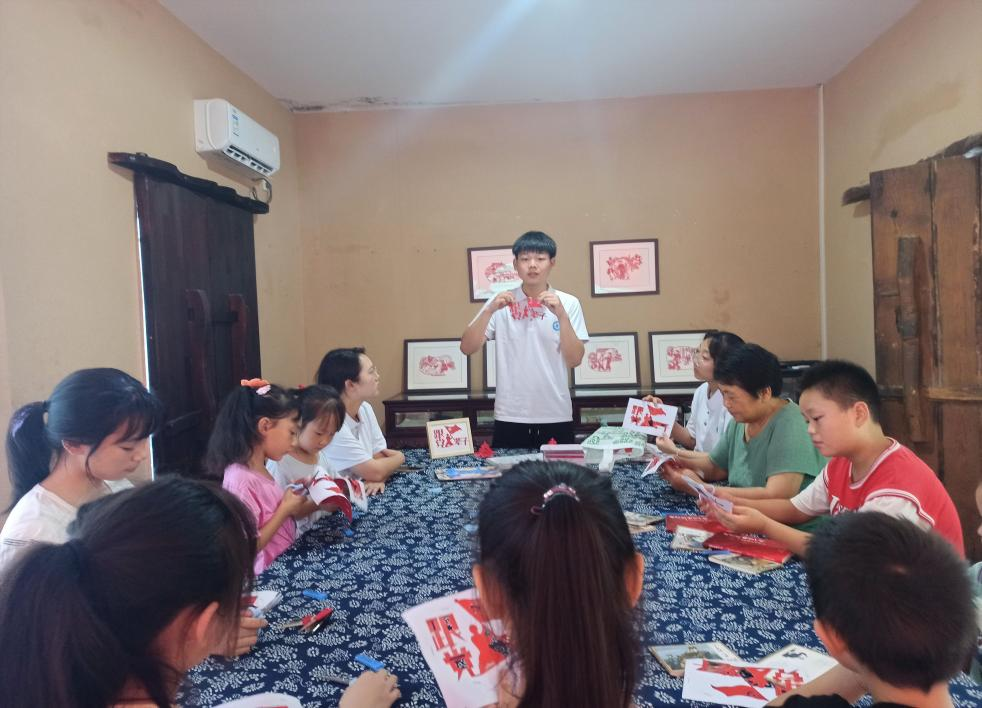 實踐隊員為姚家山村留守兒童上非遺剪紙課程