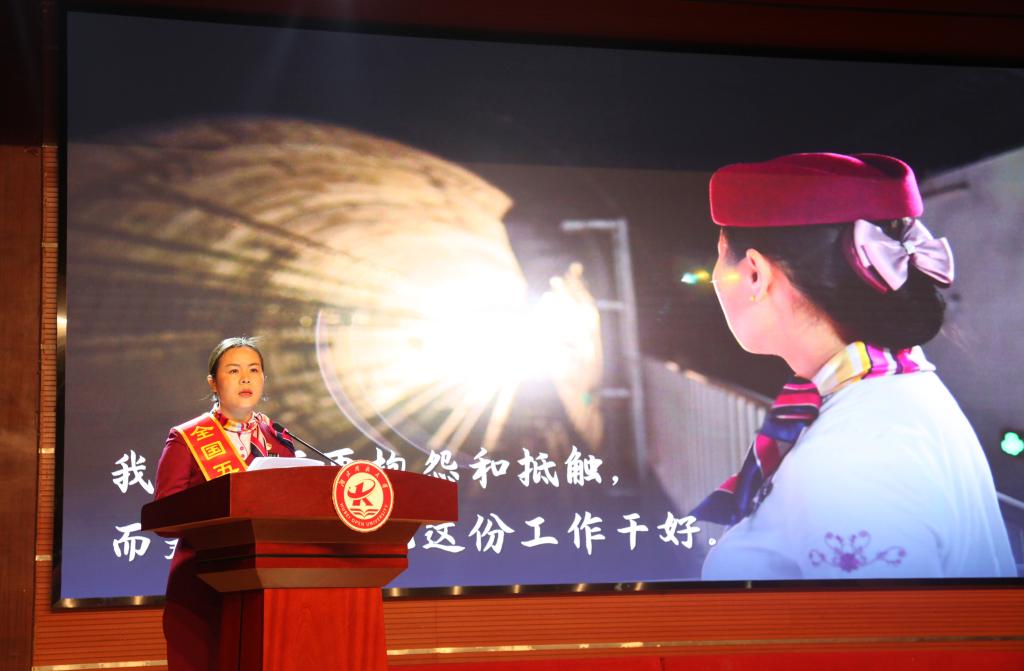 “我是一名普通的鐵路工人,從事鐵路信號施工。就是在這樣一個普通的崗位上,我卻實現(xiàn)了我的人生價值?!薄拔抑幌胍晕业慕?jīng)歷告訴大家,平凡的崗位一樣可以實現(xiàn)精彩人生。” 中鐵武漢電氣化局信號女子突擊隊隊長、全國五一勞動獎?wù)芦@得者王艷鴿以《以工匠精神雕刻時代品質(zhì)》為題,從堅守、苦練、奉獻、自豪的心路歷程講述了在長期戶外艱苦的工作環(huán)境中錘煉出“勇于爭先、自強奮進、創(chuàng)新超越、甘于奉獻”的突擊隊精神。