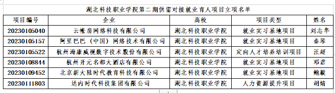 本訊網(通訊員 湯苗苗 文/圖)4月6日,教育部高校學生司發布《關于公布第二期供需對接就業育人項目立項名單的通知》(教學司函〔2023〕6號),我校攜手云帳房網絡科技有限公司、 阿里巴巴(中國) 網絡技術有限公司、杭州海康威視數字技術股份有限公司、杭州開元名都大酒店有限公司、北京新大陸時代教育科技有限公司、 達內時代科技集團有限公司申報的6個項目全部獲批立項。