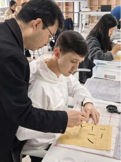 在心理健康教育中心,中外學生們共同開展了一場跨文化人際互動團體輔導活動,同學們繪制自畫像并相互介紹了自己,拉近了彼此的距離。在“溝通接力”游戲中,中外學生們跨越語言障礙,憑借豐富的肢體表達和敏銳的觀察力,成功完成了信息傳遞。他們表示,盡管大家國籍、語言和生活習慣大不相同,但彼此之間仍存在許多共同點,初次見面就像老朋友一樣。在大學生活動中心,我校學子為國際學生們帶來了琴棋書畫、歌舞展示、漢服表演、國球交流等豐富多彩的活動,中外學子青春洋溢、匯聚一堂、深入交流、其樂融融。中國學生和中亞學生們一起載歌載舞、寫書法、學剪紙、切磋乒乓球,來自烏茲別克斯坦的G.A.D還主動上臺演唱了家鄉的歌曲。通過這種形式的文化交流,中外學生們增進了了解和友誼,在歡聲笑語中進行了更深層次的互動。