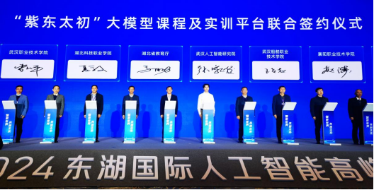 會上,夏學文作“人工智能產(chǎn)教融合共同體 賦能高素質技能人才培養(yǎng)”主題報告,詳細介紹了我校聯(lián)合湖北大學、科大訊飛等單位組建的湖北省人工智能產(chǎn)教融合共同體,以及共同體在推進高素質技能人才培養(yǎng)方面取得的顯著成效。并代表我校與省教育廳、武漢人工智能研究院等單位共同簽訂了“紫東太初”大模型課程及實訓平臺聯(lián)合協(xié)議,標志著我校在人工智能教育領域邁出了堅實的一步。