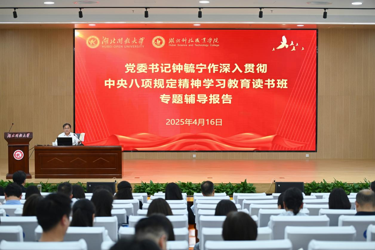 本網(wǎng)訊(通訊員 肖凌瑤/文 劉捷/圖)4月16日下午,學(xué)校舉辦深入貫徹中央八項(xiàng)規(guī)定精神學(xué)習(xí)教育讀書班第二次集中學(xué)習(xí)。黨委書記鐘毓寧作專題輔導(dǎo)報(bào)告,全體校領(lǐng)導(dǎo)、中層領(lǐng)導(dǎo)干部參加學(xué)習(xí),會(huì)議由黨委副書記、校長陳志祥主持。