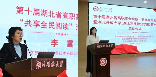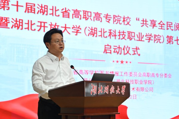 校黨委副書記、校長(zhǎng)陳志祥,黨委常委、副校長(zhǎng)夏學(xué)文出席儀式并講話。湖北省高校圖工委副主任委員、湖北省高校圖工委高職高專分委會(huì)主任、武漢職業(yè)技術(shù)大學(xué)圖書館館長(zhǎng)侯利華,北京智聯(lián)起點(diǎn)信息技術(shù)有限公司區(qū)域經(jīng)理李雪應(yīng)邀參加。學(xué)校相關(guān)職能部門負(fù)責(zé)人及各院(部)黨總支書記、師生代表等200余人參會(huì)。