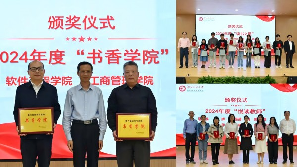 儀式現(xiàn)場(chǎng)揭曉了《2024年度校園閱讀報(bào)告》,通過進(jìn)館量、借閱榜單、數(shù)字資源使用情況等數(shù)據(jù),呈現(xiàn)師生閱讀風(fēng)貌。在頒獎(jiǎng)環(huán)節(jié),參會(huì)領(lǐng)導(dǎo)分別為獲得“讀書之星”“悅讀教師”及“書香學(xué)院”的個(gè)人和集體頒發(fā)證書及獎(jiǎng)品。獲獎(jiǎng)師生作為榜樣為書香校園的建設(shè)傳遞了閱讀力量。