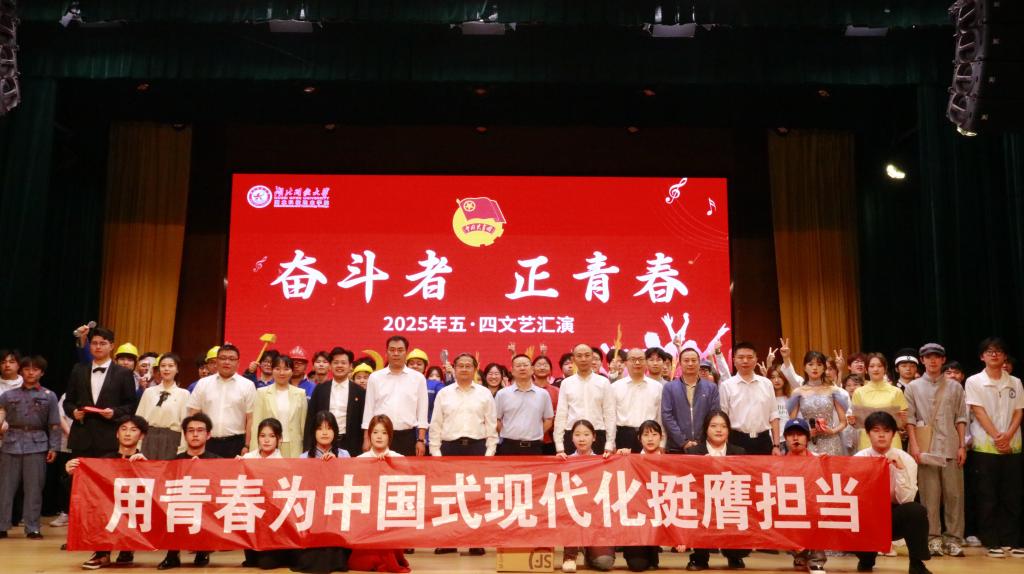 整場匯演高潮迭起,觀眾掌聲不斷。最后,全體演員與校領導合影,活動在《光榮啊,中國共青團》的合唱中圓滿落幕。