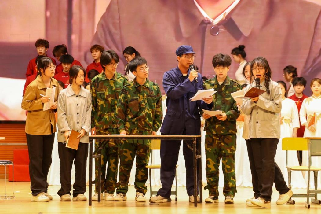 軟件工程學院節目《不朽的旗幟》,通過紅綢光影、舞臺敘事和合唱的三維融合,構建了一場跨越百年的“時空對話”。