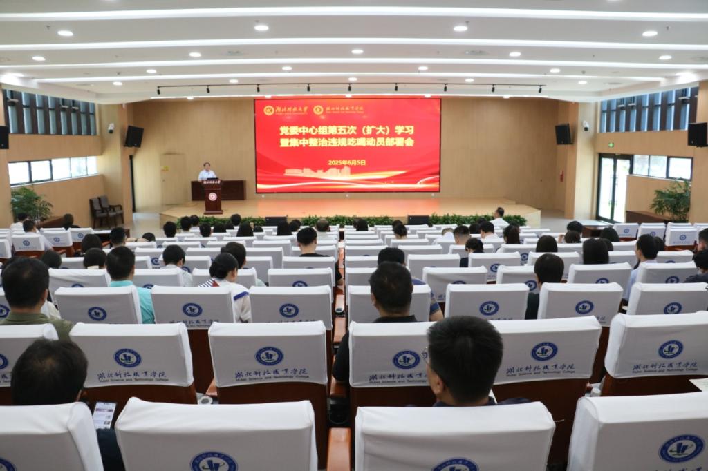本網訊(通訊員 劉捷/文 李賀剛/圖)6月5日上午,學校召開黨委中心組(擴大)學習會暨集中整治違規吃喝動員部署會。學習貫徹習近平總書記關于開展深入貫徹中央八項規定精神學習教育的重要講話、重要指示精神,通報相關案例,貫徹落實湖北省集中整治違規吃喝動員部署會精神,推進以案促學、以案促改、以案促治,持續鞏固風清氣正的政治生態。全體校領導,全體中層領導干部參加會議,黨委副書記、校長陳志祥主持會議。