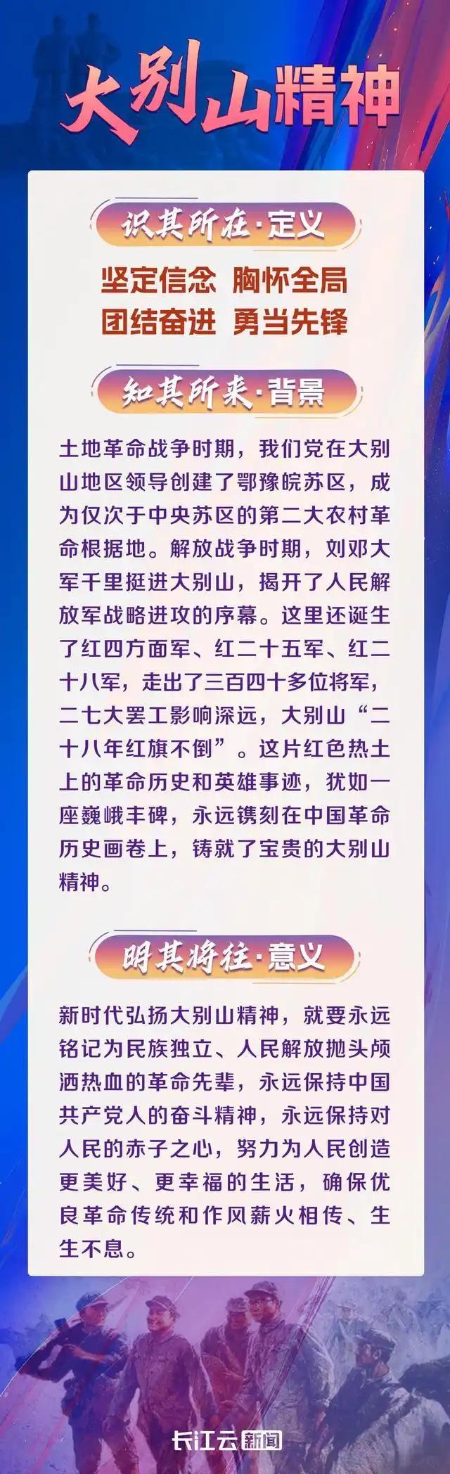 【編者按】歷史川流不息,精神代代相傳。2024年11月,習(xí)近平總書(shū)記考察湖北,對(duì)湖北的發(fā)展提出了更高定位、更高標(biāo)準(zhǔn)、更高要求,特別強(qiáng)調(diào)要“大力弘揚(yáng)大別山精神、抗洪精神、抗疫精神,廣泛踐行社會(huì)主義核心價(jià)值觀”。“二十八年紅旗不倒”凝結(jié)大別山精神;奮戰(zhàn)特大洪水凝結(jié)“抗洪精神”; 偉大抗疫斗爭(zhēng)鍛造“抗疫精神”,三大精神是三座巍然聳立的精神豐碑,是中國(guó)共產(chǎn)黨人精神譜系的“湖北篇”,精髓一脈相通,共同賡續(xù)紅色血脈,是中國(guó)共產(chǎn)黨性質(zhì)、宗旨和品格、氣質(zhì)的生動(dòng)體現(xiàn),是黨的寶貴精神財(cái)富,是強(qiáng)國(guó)建設(shè)、民族復(fù)興偉業(yè)的力量源泉。