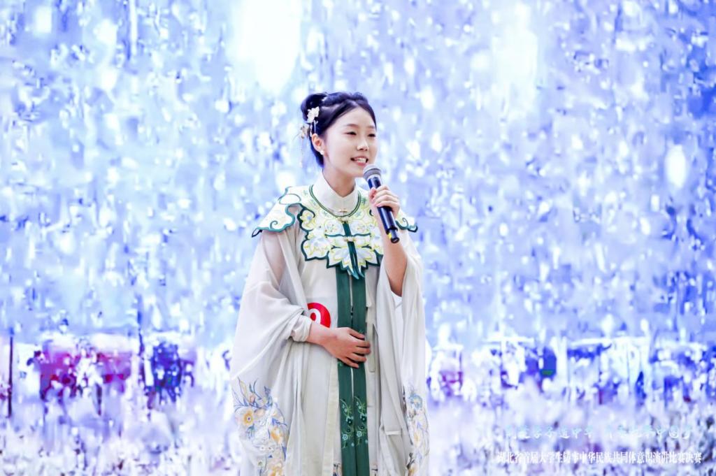 學校始終將鑄牢中華民族共同體意識教育作為立德樹人的重要內(nèi)容。在接到比賽通知后,校團委牽頭,組織部、統(tǒng)戰(zhàn)部,馬克思主義學院、公共課教學部等多部門協(xié)同聯(lián)動,積極組織學生備賽,開展多輪研討打磨,力求以高質(zhì)量作品展現(xiàn)我校民族團結(jié)教育成果。經(jīng)過評比,推選經(jīng)濟貿(mào)易學院叢語琦同學代表學校參賽。其作品《四千公里赴漢求學:新疆“石榴籽”女孩同心筑夢》從身邊故事出發(fā),以“小切口”講“大道理”,用“身邊事”傳“團結(jié)情”,在演講中深情回憶了家鄉(xiāng)新疆的多民族生活點滴,講述了來校后認識武漢、融入武漢的溫暖故事。她動情地說:“各民族像天山的雪水,匯聚才能成河;像石榴籽緊緊相擁,才有最溫暖的歸屬。”