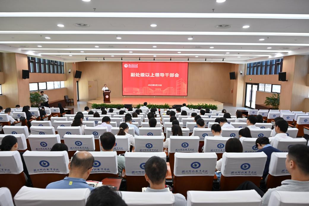 會上,校長陳志祥圍繞“黨建引領凝聚發展合力、融合發展激發改革動能、教學科研彰顯師生風采”總結了“重大任務迎來新突破、三教協同開創新局面、各類項目實現新提升”三個方面取得的成績,并布置了暑假期間的重點工作。他指出,全校各單位(部門)要堅持以上率下,在工作中,主動承擔重點難點任務,在推進重大項目時,負責人要親自掛帥,帶領團隊攻堅突破;要壓實責任鏈條,加強重點工作的清單化管理與全過程跟蹤,定期開展專項督查與效能評估,強化考核結果運用;要強化協同聯動,樹立“全校一盤棋” 意識,凝聚起全校上下心往一處想、勁往一處使的攻堅合力,確保各項重點任務在系統推進中取得突破。