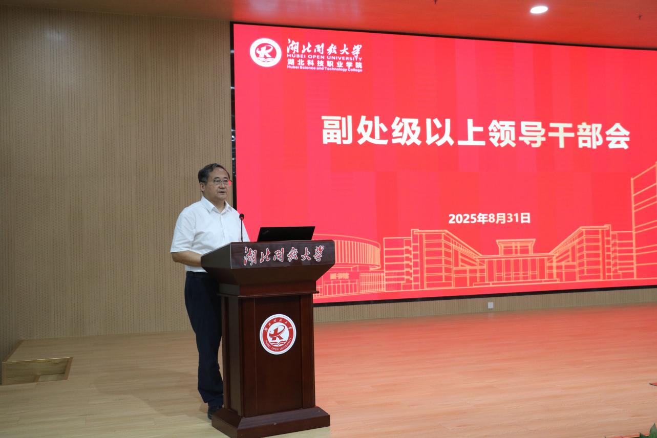 陳志祥圍繞“開放教育深化改革、職業教育提質培優、終身教育提質擴容、教學科研彰顯風采、內部治理持續優化”五個方面,總結了暑期工作的主要成績。他強調,新學期是全年工作的“下半場”,是沖刺全年目標的關鍵期,要清楚認識當前形勢和肩負的責任,聚焦核心任務,精準施策,繼續全力以赴做好年度工作“后半篇文章”,并結合年初工作部署,重點強調了開放教育、職業教育、社區教育、人才隊伍建設、平安校園建設以及開學準備等十個方面的工作。他要求,全校干部教師要持續強化責任擔當,大力提升協同效能,始終保持奮斗狀態,團結一心,銳意進取,努力完成全年各項目標任務。