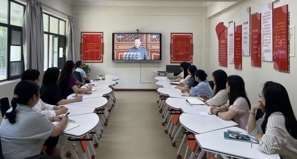 本網(wǎng)訊(通訊員:高苗苗/文 劉捷、高苗苗、大學生記者:方靖、孫蓉、張乃允、田向陽、各單位/圖)9月3日,紀念中國人民抗日戰(zhàn)爭暨世界反法西斯戰(zhàn)爭勝利80周年大會在北京天安門廣場隆重舉行,以盛大閱兵儀式,同世界人民一道紀念這個偉大的日子,共同開創(chuàng)更加光明的未來。中共中央總書記、國家主席、中央軍委主席習近平發(fā)表重要講話并檢閱受閱部隊。我校師生熱切關注大會盛況,通過“主會場+分會場”的形式收看,共同銘記歷史,緬懷英烈。