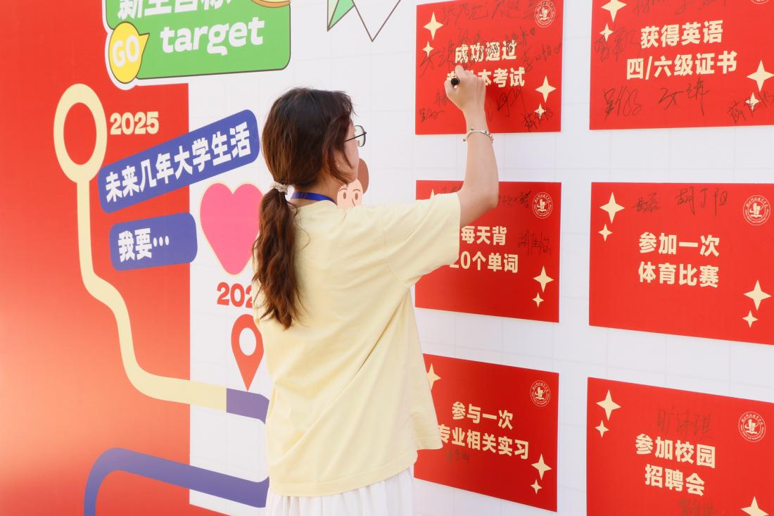 宣傳欄前,“五彩校園”之學(xué)子風(fēng)采和各學(xué)院“星學(xué)子”風(fēng)采展吸引了大批新生駐足,讓新生們在榜樣力量中錨定方向。迎新會場上的“星舞臺”社團(tuán)快閃表演引來陣陣喝彩。動感街舞、深情彈唱、典雅漢服秀……各學(xué)生社團(tuán)輪番上陣,盡情展示校園文化的活力與多元,提前為精彩的第二課堂生活預(yù)熱。“星計(jì)劃”未來啟航墻前,許多新生駐足停留,鄭重地寫下對大學(xué)的期許——“成功通過專升本考試”“掌握一門技能”“結(jié)交摯友”“參加一次志愿服務(wù)”……一詞一句,是心愿,亦是承諾,為大學(xué)的奮斗旅程定下初音。