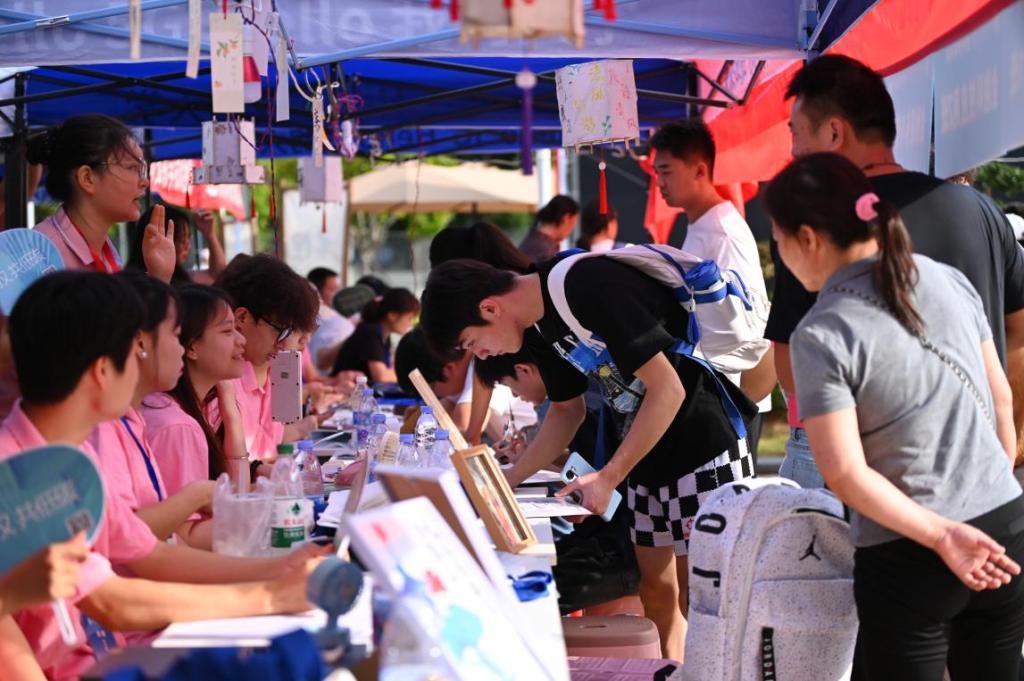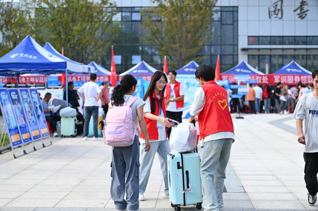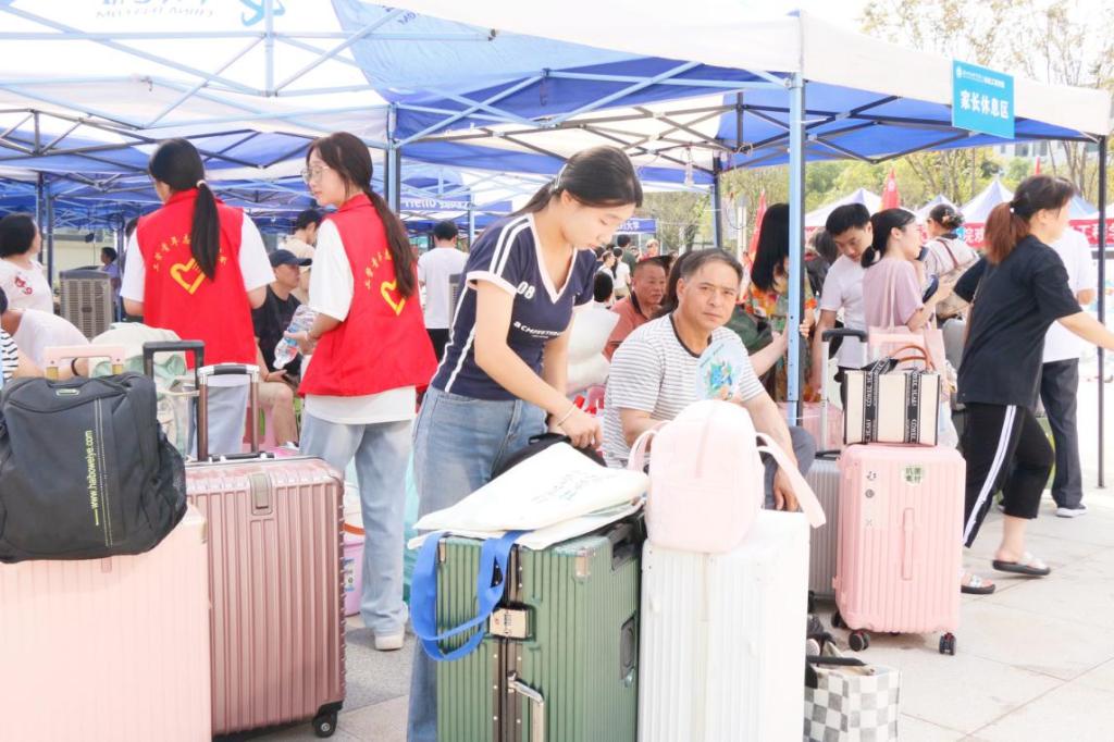 而在“家長休息區(qū)”,許多陪同報(bào)到的家長也找到了“歸屬感”。迎新會場不僅提供免費(fèi)茶飲、納涼設(shè)備與行李寄存服務(wù),更安排各專業(yè)負(fù)責(zé)人面對面與家長交流,圍繞學(xué)業(yè)支持、成長規(guī)劃和就業(yè)前景等話題展開真誠溝通,搭建起家校協(xié)同育人的第一座橋梁。