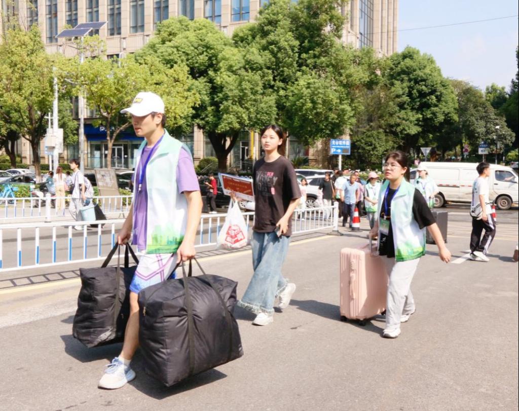 晨曦微露,一群身著“紅馬甲”和“綠馬甲”的學(xué)生志愿者已早早忙碌在校園的各個(gè)角落。他們以熱情的笑臉、耐心的指引和有力的雙手,穿梭于人群之中——解答疑問、引導(dǎo)路線、搬運(yùn)行李,用實(shí)際行動溫暖著每一位初來報(bào)到的新生。