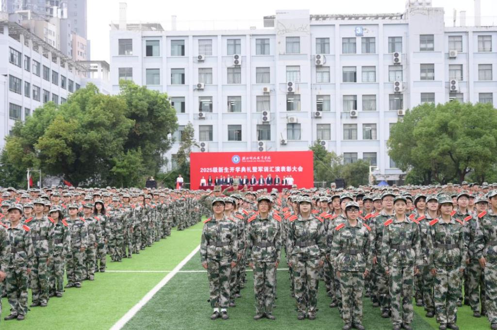 本網訊(通訊員:楊星星/文 劉捷 李賀剛 高苗苗 大學生記者:方靖/圖)秋陽映芳華,旌旗展風采。9月26日上午,學校在關山校區運動場隆重舉行2025級新生開學典禮暨軍訓匯演表彰大會。全體校領導、承訓部隊代表、各學院黨政負責人、相關職能部門負責人、全體新生輔導員及教師代表到場共同見證2025級新生經受軍訓洗禮后的颯爽英姿和開啟大學生涯的嶄新篇章。