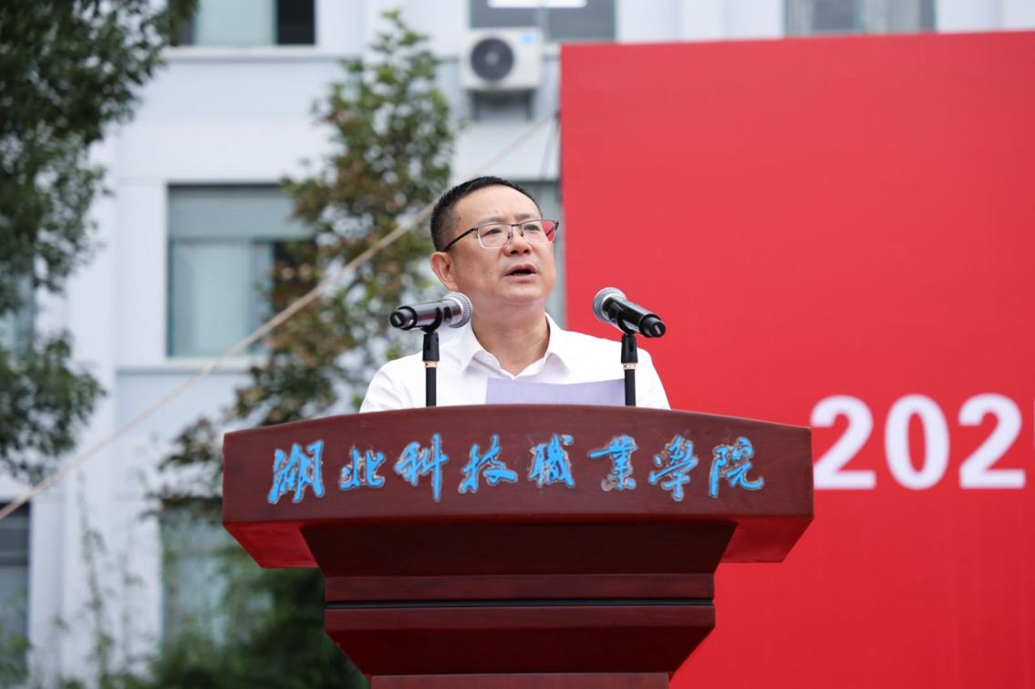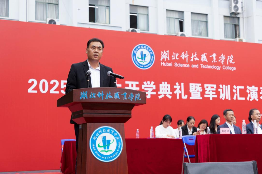 “開學第一課”是新生大學生涯的首堂思政課,為引導新生扣好大學“第一??圩印?,校長陳志祥進行了熱情洋溢又飽含深情的講話。他向同學們介紹了學校近年來取得的發展成就,并深入剖析了當前面臨的寶貴發展機遇,鼓勵同學們涵養學識、精進技藝、塑造人格、勇敢追夢,給同學們上了一堂生動且深刻的入學第一課,并提出了三點殷切希望:一是要涵養“大情懷”,鑄就報國為民的匠心之魂;二是要錘煉“鐵肩膀”,鍛造實干擔當的匠心之能;三是要開拓“新視野”,點亮成就未來的匠心之夢。他囑托大家要以情懷為筆,以本領為墨,以視野為圖,為中國式現代化貢獻力量,為湖北支點建設挺膺擔當!