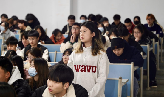 學(xué)生代表發(fā)言,結(jié)合各自學(xué)習(xí)、工作和生活進(jìn)行交流。