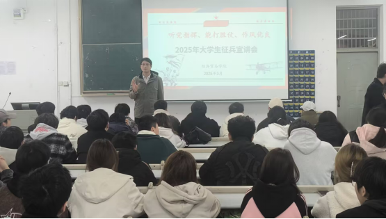 本網訊(通訊員 李哲/文 梁玄琪 曾智陽 崔思涵/圖)3月14日,經濟貿易學院依托一站式學生社區舉辦2025年度大學生征兵政策宣講會,面向2023級、2024級全體學生深入解讀入伍政策,通過政策解讀、問題解答、故事分享、互動體驗等環節,激發青年學子參軍熱情。