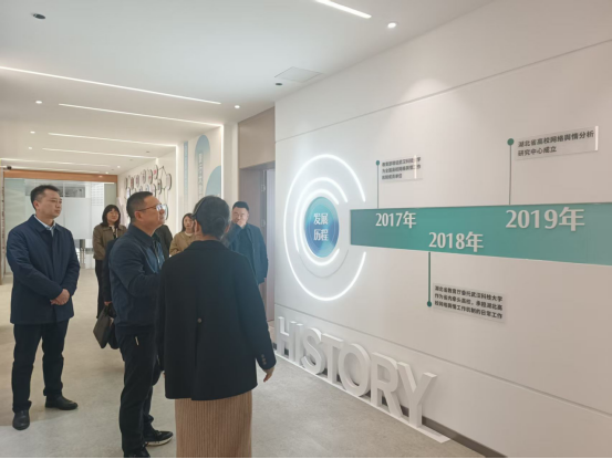 座談會后,調(diào)研組參觀了武科大校園110指揮中心和湖北省高校網(wǎng)絡(luò)輿情分析研究中心。