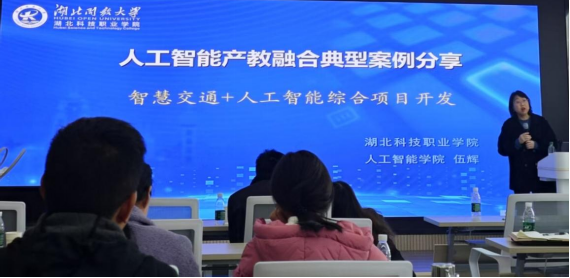 伍輝以“人工智能產(chǎn)教融合典型案例分享”為題開展簡短分享。她結(jié)合我校“人工智能+創(chuàng)新實(shí)踐基地”的案例,詳細(xì)解讀了產(chǎn)教融合模式的實(shí)際落地路徑,并展示了實(shí)訓(xùn)室建設(shè)、智能交通項(xiàng)目開發(fā)、數(shù)字教材編纂等成果。