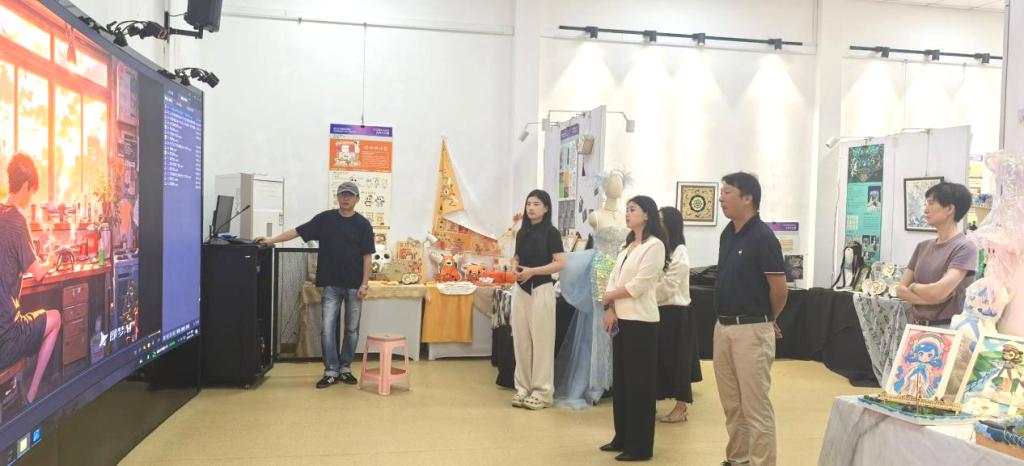 作為活動周亮點,學院美育教學成果展在2025世界數字教育大會上驚艷亮相。展覽以“科技+非遺”為主線,設置藍染、剪紙、數字化互動三大展區,其中“武漢剪紙數字課堂”引發廣泛關注。學院特邀省級非遺傳承人沈松柏現場演示剪紙襯色技藝,并同步推出其“數字人講師”形象,通過虛實結合的教學模式,實現全省學員線上實時學習。為武漢剪紙這一珍貴的非遺技藝的活態傳承注入了數字化新動力。成果展吸引了國內外嘉賓的參觀與體驗。參觀者對非遺技藝與數字科技相結合的創新模式給予了高度評價,稱贊其為非遺傳承開辟了新的路徑。此次美育教學成果展不僅彰顯了我院在美育教育領域的深厚底蘊和創新成果,也為數字技術在美育教育領域的應用提供了范本。