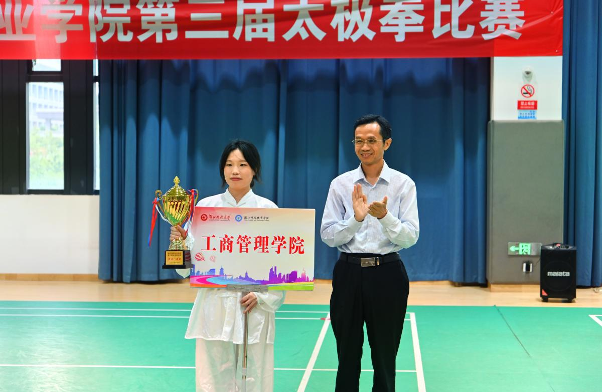 本次活動得到了各學院的積極響應,同學們踴躍參與個人賽和團體賽。在公共課教學部體育課程教學團隊的精心組織下,12名選手從90名初賽選手中脫穎而出,進行個人賽項的決賽角逐,6個學院組成6支代表隊參加團體賽項的比拼。經過激烈角逐,現場產生團體賽一等獎1名,二等獎2名,三等獎3名;個人賽一等獎1名,二等獎2名,三等獎3名,優秀獎6名。參賽選手紛紛表示,通過加強太極拳的訓練和練習,不僅有效提升了身體協調性、柔韌性與平衡能力,還在“以柔克剛”“動靜結合”“形神兼備”的拳理實踐中領悟了中國傳統哲學思想的精髓,培養了專注、沉穩、堅韌的意志品格。