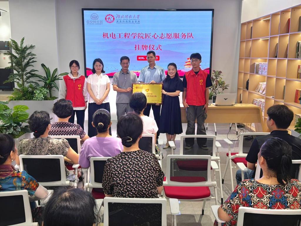 7月24日,機電工程學院黨總支書記、教工一支部書記在金安嶺社為社區授牌“湖北科技職業學院機電工程學院匠心志愿服務隊實踐基地”,金安嶺社區書記陳靜、宜昌市西陵區委社會工作部副部長謝登彪、夜明珠街道副主任張愉和共同出席儀式。學院黨總支書記表示,此次是校社聯動的生動實踐,既發揮高校專業優勢,又錘煉學生服務能力,未來將依托優質教育資源,與社區共豐居民生活、共建和諧社區。