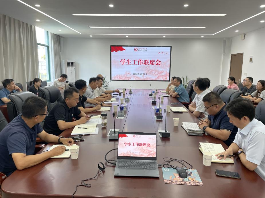 周得力傳達(dá)了上級有關(guān)會議精神,充分肯定了各部門暑期工作“不斷線”的辛勤付出和取得的階段性成績,并圍繞開學(xué)初工作從四個方面進(jìn)行了再強(qiáng)調(diào):一是要堅決筑牢安全防線,高度重視并做好“兩熱”防控工作,同時持續(xù)抓好消防安全、食品衛(wèi)生安全和網(wǎng)絡(luò)安全等工作,確保校園整體安全穩(wěn)定;二是要有序做好開學(xué)保障,周密組織老生返校和新生報到工作,優(yōu)化流程、細(xì)化服務(wù),全方位提升學(xué)生幸福感、體驗(yàn)感和滿意度;三是要強(qiáng)化學(xué)生思想引領(lǐng),抓住開學(xué)教育關(guān)鍵期,引導(dǎo)學(xué)生盡快調(diào)整狀態(tài)、投入學(xué)習(xí),夯實(shí)成長成才的思想基礎(chǔ);四是要協(xié)同凝聚育人合力,各學(xué)院和各部門要加強(qiáng)溝通、密切配合,暢通信息共享與響應(yīng)機(jī)制,緊盯學(xué)生需求和現(xiàn)實(shí)困難,及時回應(yīng)、高效解決,共同推動新學(xué)期學(xué)生工作開好局、起好步。