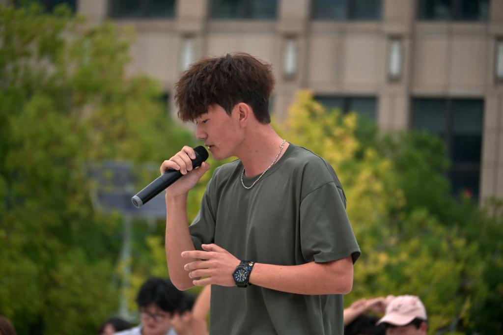 才藝表演環節將現場氣氛推向高潮,各連隊學子輪番登場,展現多元青春魅力。經典歌曲《日不落》的女團舞活力四射,引來陣陣歡呼;《阿刁》《游京》等高難度歌曲被同學們深情演繹,展現出不凡的音樂素養;來自新疆學子的一首《如果可以》深情動人,用歌聲傳遞出民族團結的溫暖情誼。舞臺雖簡,卻成為青春綻放的天地,掌聲與歡笑此起彼伏。