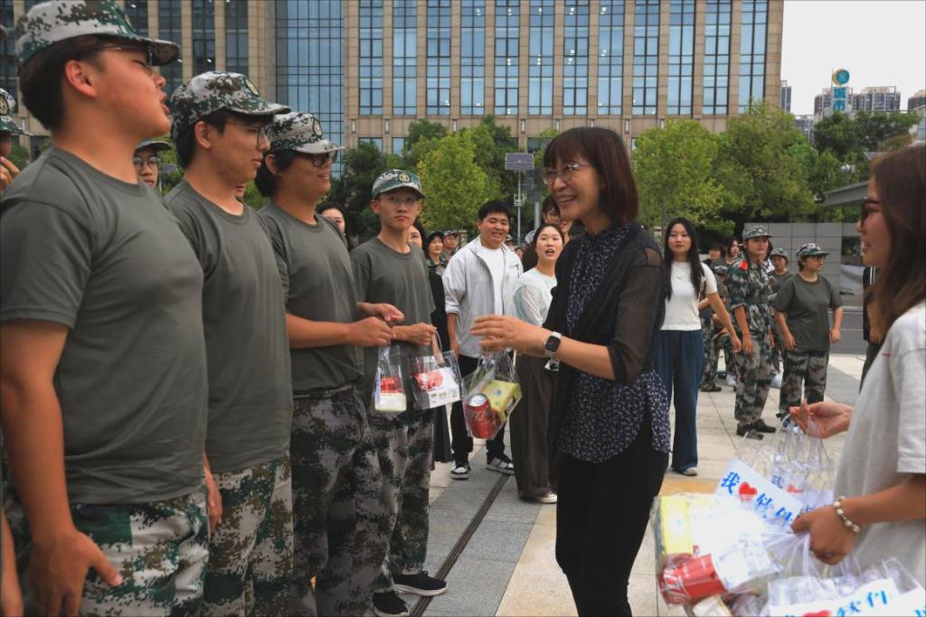 本網訊(通訊員:吳豫/文 方靖 王成卓/圖)秋陽淬煉青春志,戎裝不負少年時。9月23日下午,軟件工程學院院領導、專任教師及全體專兼職輔導員前往北廣場親切慰問正在接受軍事訓練的2025級新生,為他們送去清涼飲品和暖心零食,傳遞學院的殷殷關懷與深切期望。