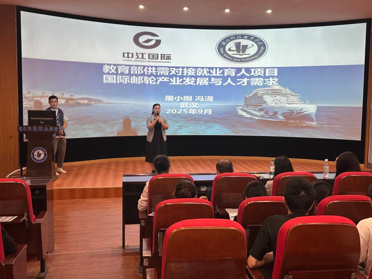 本網(wǎng)訊(通訊員:閆秦勤 文/圖) 9月27日,學(xué)校工商管理學(xué)院國(guó)際郵輪乘務(wù)管理專業(yè)2023級(jí)實(shí)習(xí)動(dòng)員會(huì)順利召開(kāi)。作為教育部供需對(duì)接就業(yè)育人項(xiàng)目的重要實(shí)踐載體,本次活動(dòng)同步迎來(lái)中國(guó)江蘇國(guó)際經(jīng)濟(jì)技術(shù)合作集團(tuán)有限公司(簡(jiǎn)稱“中江國(guó)際集團(tuán)”)的實(shí)習(xí)宣講與現(xiàn)場(chǎng)面試,全國(guó)交通運(yùn)輸職業(yè)教育教學(xué)指導(dǎo)委員會(huì)委員、中江國(guó)際郵輪管理中心主任屠小剛,招聘經(jīng)理馮湜來(lái)校開(kāi)展實(shí)習(xí)宣講。2023級(jí)國(guó)際郵輪乘務(wù)管理專業(yè)全體學(xué)生、武漢交通職業(yè)學(xué)院交通文旅學(xué)院師生跨校參與,共探郵輪人才培養(yǎng)與就業(yè)新路徑。