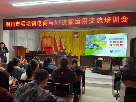 本網(wǎng)訊(通訊員 王玉紅/文 鄧紅/圖)近日,受學校對口幫扶的恩施利川毛壩鎮(zhèn)鎮(zhèn)政府邀請,在學校駐村工作隊的積極協(xié)調安排下,湖北開放大學工商管理學院電子商務專業(yè)鄧紅、王玉紅兩位老師前往毛壩鎮(zhèn),開展電商與AI應用技能專題培訓。本次培訓的參訓人員涵蓋毛壩鎮(zhèn)鎮(zhèn)政府工作人員、各村“兩委”村干部、鄉(xiāng)鎮(zhèn)企業(yè)負責人及電商愛好者等,共計120余人參與。
