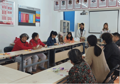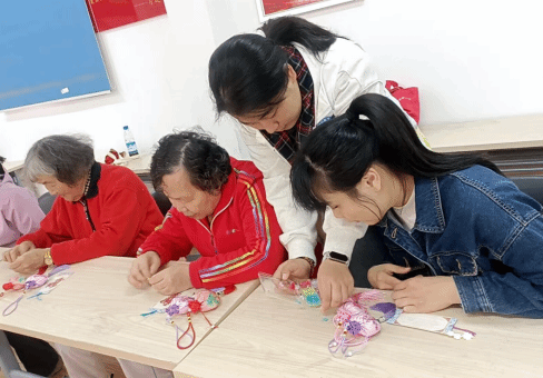 為讓老人們親身感受傳統文化的魅力,活動特別設置了“制作非遺螺鈿”環節。在志愿者的“手把手”指導下,老人們認真學習螺鈿鑲嵌的技巧,將一片片精美的貝殼細心貼在漆器上,創作出獨一無二的非遺作品。此外,志愿者們還向每位參與活動的老人贈送了精心準備的艾草香囊,淡淡的草藥清香寄托著美好祝福。