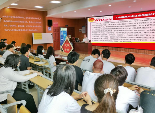 張文凱圍繞共青團的創建、四次更名的經歷以及各個時期共青團為實現中華民族偉大復興中國夢作出的重要貢獻,帶領同學們了解中國共青團的光輝歷程,期間重點對習近平總書記在慶祝中國共青團成立一百周年大會上的重要講話要點進行深度解讀。他殷切希望同學們要有理想、有追求,繼承和發揚偉大的五四精神,把個人的理想追求融入黨和國家事業之中,堅守理想信念,厚植家國情懷。