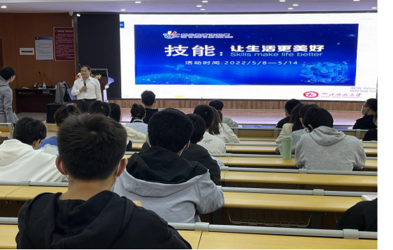“中國如今是制造業大國,‘中國制造’要與歐美大國搶占未來制造業高地,關鍵在人,關鍵要有一支素質優良、結構合理的制造業人才隊伍。建設制造強國,人才是根本。既要培育大批科學家、技術專家,更要有幾何級數倍增的實用型技能人才”。他結合我校優秀學子成才案例以及新修訂的《中華人民共和國職業教育法》,讓同學們感受到職業教育備受重視、前景廣闊,技能報國有著廣闊的空間和無限的機遇,高職學生享有同等的人生出彩的機會。
