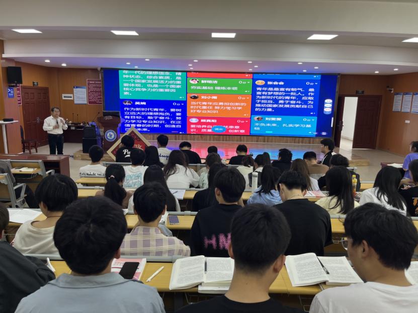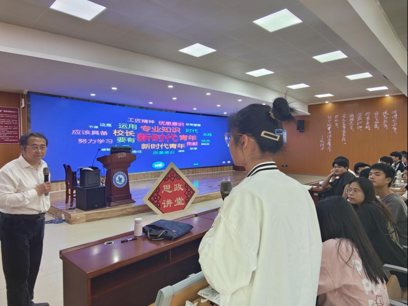 在“校長我想對您說”互動環節,學生們踴躍發言。莫連楓、趙煥文、吳夢潔等同學,向校長提出了自己在大學階段有關學習和未來求職規劃等方面的困惑,鐘毓寧認真耐心地逐一解答,并表示自己十分看好我校學生,給予學生莫大的鼓舞!現場八十余名學生紛紛通過線上學習平臺參與了課堂感悟留言活動,言語真摯、感悟真切,滿懷希望。活動結束,課堂上響起了雷鳴般的掌聲,同學們意猶未盡,感念本堂思政課對自己的觸動與啟發。