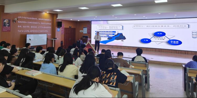 “回顧世界強國發展史,人才從未缺席”“中國共產黨的奮斗史,就是一部集聚人才、造就人才的歷史”“我國已成為人才資源大國”。在對人才強國戰略的解讀過程中,鐘毓寧彰顯出深厚的歷史底蘊和豐富的人生閱歷,從人才培養角度帶領同學們共同探討國內外經驗,勉勵廣大青年學子們增強三個意識,即質量意識,要努力成為一名追求卓越、精益求精的行業工匠;創新意識,要深刻認識到我國經濟社會發展已經轉變為提升質量、結構升級、創新驅動為主要內容的高質量發展趨勢上來;憂患意識,要腳踏實地、謙虛求問,向行業內優秀人才看齊,不斷提升個人綜合素質,努力匹配產業升級發展的新需求。