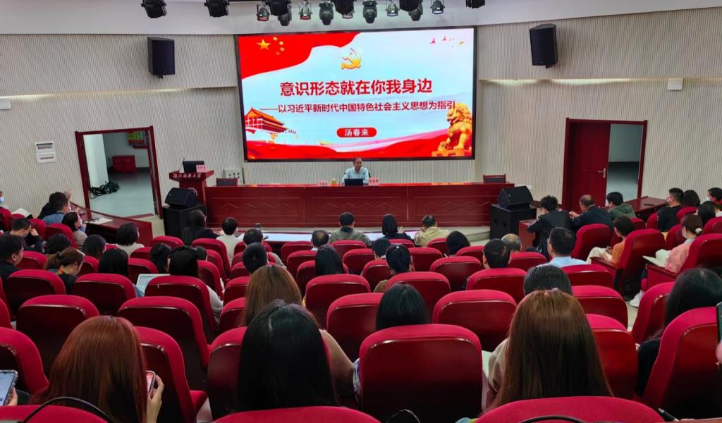 湯春來以“意識形態就在你我身邊”為主題,以意識形態的概念內涵開場,從地位與作用、使命與任務、原則與要求、陣地與戰場四個維度深刻闡明了新時代意識形態工作關乎旗幟、關乎道路、關乎國家政治安全,是為國家立心、為民族立魂的極端重要的工作。他緊密結合時事,以生動鮮活的案例,深刻闡述了面對意識形態領域的尖銳斗爭,沒有任何妥協、退讓的余地,要敢于亮劍,敢于斗爭,必須運用習近平新時代中國特色社會主義思想的世界觀和方法論來指導高校意識形態各項工作。
